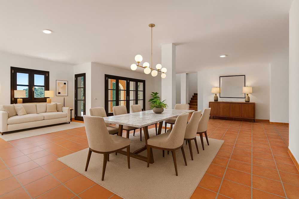 Impressive villa in the hills of Casares with space, privacy and incredible views: Located in Celima, Casares, the property has open countryside and mountain views, and its west-facing orientation provides afternoon and evening sun. The property is private and has a spacious layout arranged over three levels. The ground floor includes a large living room with access to a covered terrace, a lounge area and a fitted kitchen. The first floor has three bedrooms, each with its own terrace and en-suite bathroom. The plot includes an infinity pool, garden areas and a garage with space for two cars. The basement is substantial and can be adapted to suit different needs. Options include adding more bedrooms, a guest apartment, or rooms for leisure such as a cinema or games room. The property is five minutes from Casares village and 20 minutes from the coast. Please note that the house is constructed, but that any furniture in the photographs is for guidance only. Viewings are recommended.