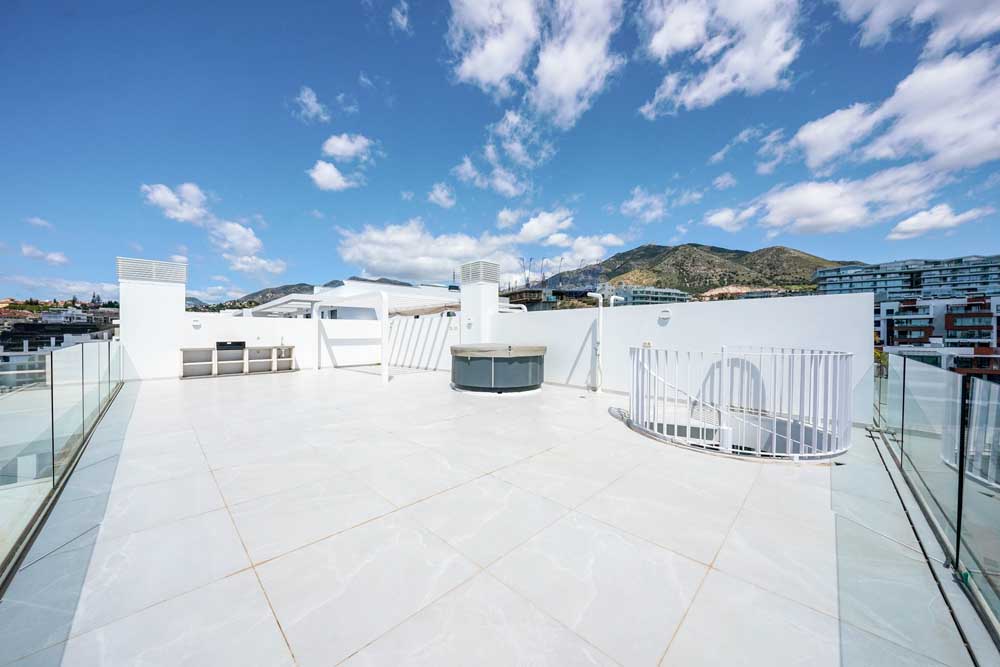 Beautiful south-facing two-bedroom penthouse located in the exclusive Med Two Collection at La Reserva del Higueron Resort, Fuengirola. The property offers a bright living and dining area with open-plan fully fitted kitchen, master bedroom en suite, one guest bedroom with separate bathroom, and a practical laundry area. Upstairs, a stunning 100m² private solarium with jacuzzi and BBQ area provides the perfect space to relax and enjoy the sun all day. Ideally situated within walking distance to the beach, promenade, all amenities and the train station, with direct connections to Malaga Airport and city centre